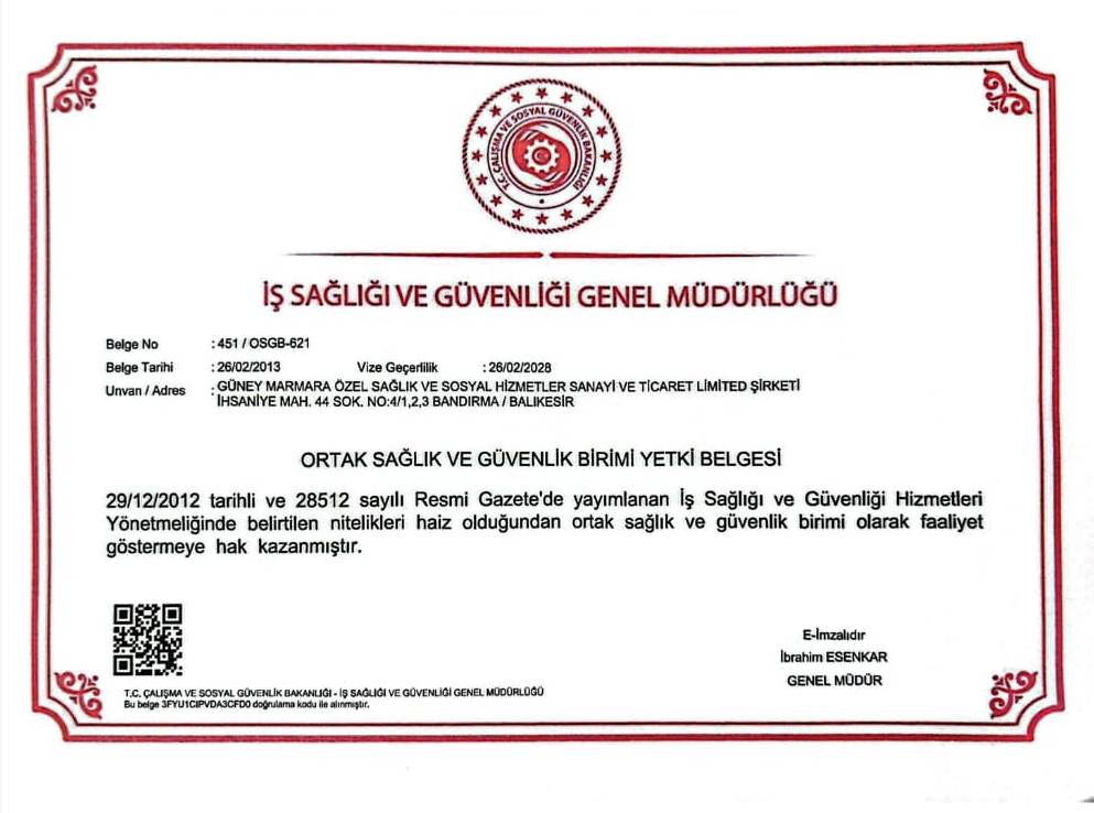 - OSGB YETKİ BELGESİ